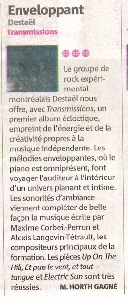 Entrevue avec Pascaline David, Le Messager Lasalle / Le Journal Métro de Montréal, January 9th 2018 : http://journalmetro.com/local/lasalle/actualites/1337816/quadr-roues-velo-myriam-bleau-musique-electroacoustique-electronique-henri-lemieux-concert/